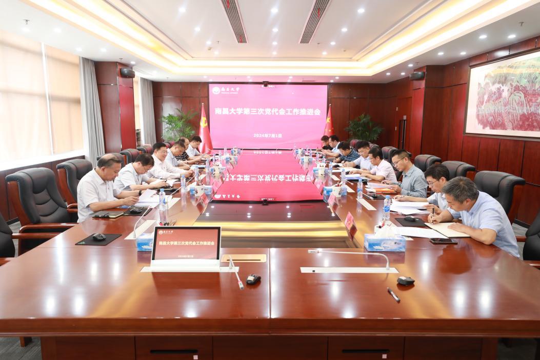 本網訊(記者涂金鳳)7月1日下午,學校召開中國共產黨南昌大學第三次黨員代表大會工作推進會,部署大會籌備沖刺階段各項工作。校黨委書記羅嗣海主持會議并講話。校黨委副書記劉耀彬、校紀委書記萬繼鋒出席會議。