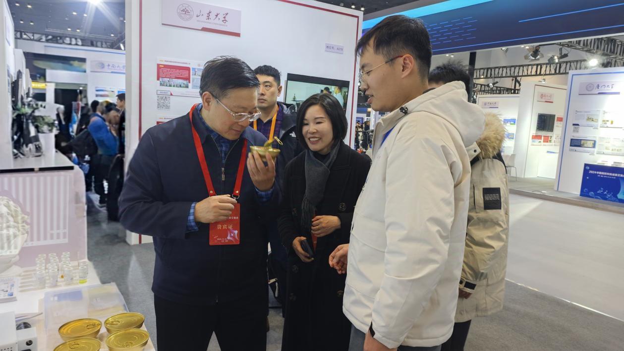 在2024中國高校科技成果交易會上,南昌大學有6個具有代表性的可轉化成果入選參展,分別涉及先進材料、信息技術、裝備制造、能源環保、生物醫藥等5個領域,受到廣泛關注。會展期間,羅嗣海來到南昌大學參展展位,認真聽取參展作品的詳細介紹,深入了解各項目產業化的創新點和市場應用場景等關鍵要素,鼓勵師生在科研和創新的道路上持續探索,力爭取得更多突破性成果,為學校增光添彩,為推進中國式現代化建設貢獻新的更大智慧和創新效能。