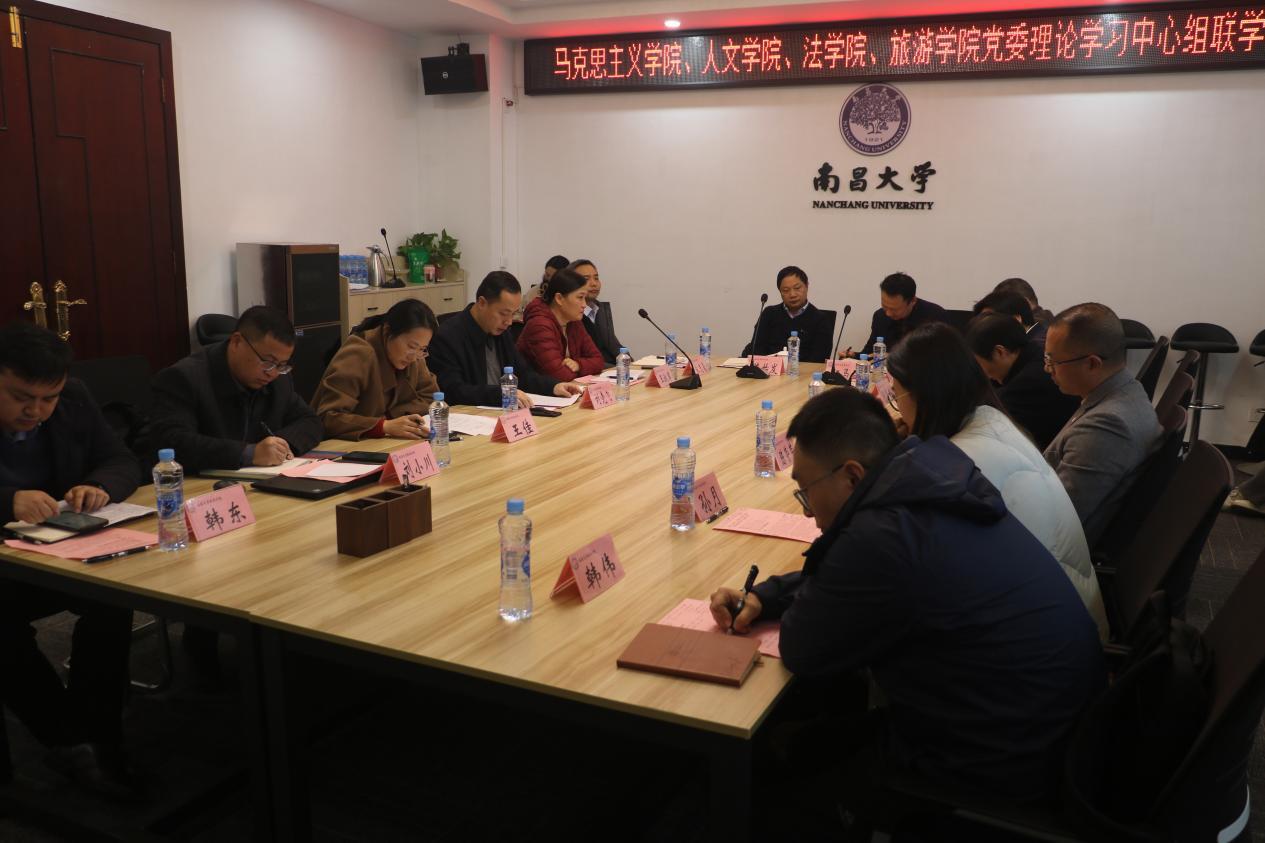 馬克思主義學院、人文學院、法學院、旅游學院負責人分別圍繞習近平文化思想,結合各自學院工作實際作重點發言,總結各自學院2024年度黨委理論學習中心組學習情況,針對2025年度學院理論學習中心組提出學習思路。習近平文化思想是新時代黨領導文化建設實踐經驗的理論總結,主題鮮明、內涵深邃、邏輯嚴密、體系完備。4個學院紛紛表示,要通過集體研討、個人自學、專題調研、專家輔導等形式,不斷推進深入學、創新學,完整、準確、全面領會習近平文化思想的核心要義、豐富內涵、科學體系和實踐要求,積極探索習近平文化思想與文科學科更廣領域、更深層次、更高水平的融合路徑,立足江西底色深挖本土文化資源,主動擔當傳播中華優秀傳統文化的歷史使命,不斷講好中國故事、傳播中國聲音。