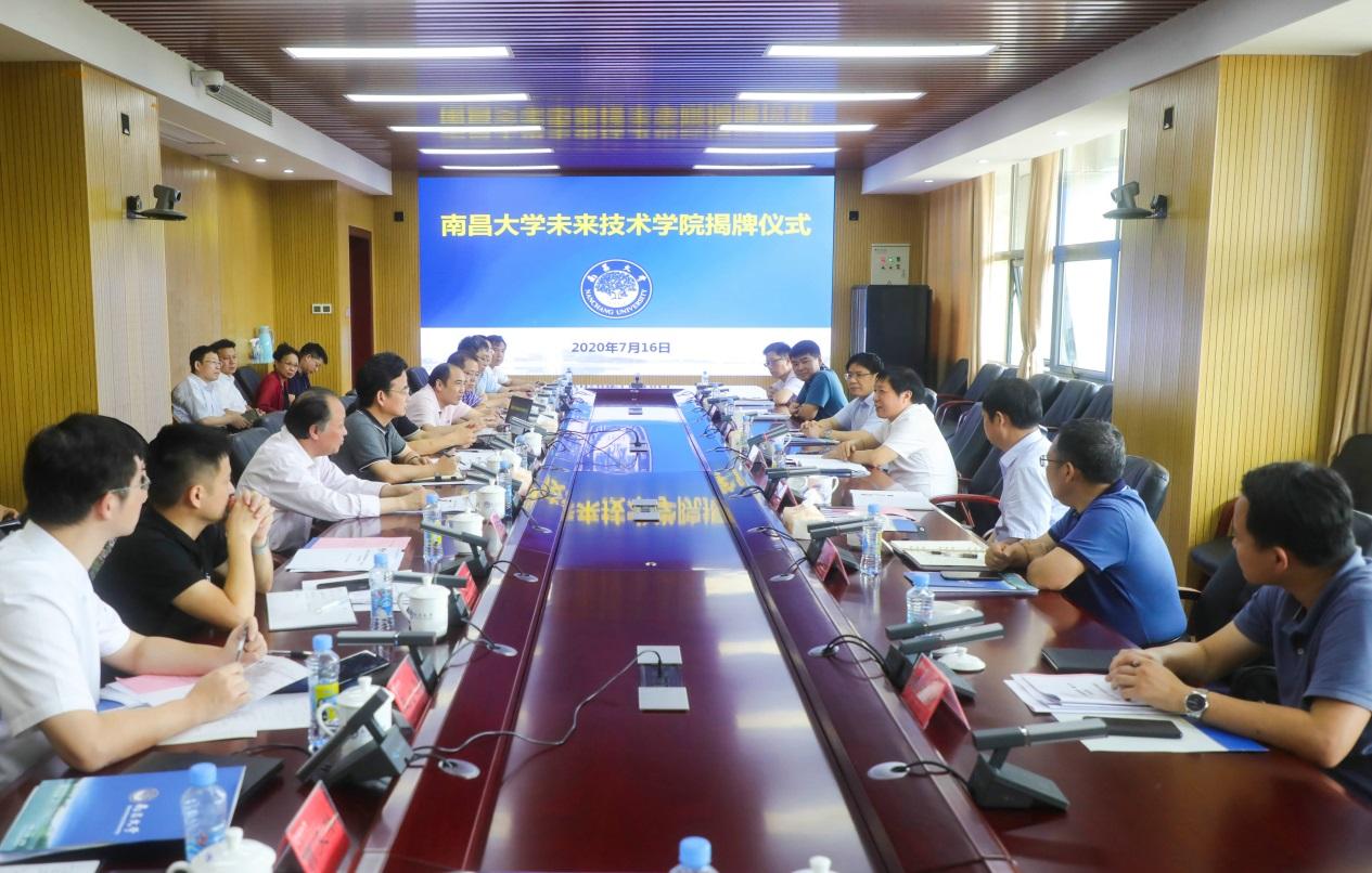 孫菊生、樊雅強、郭杰忠、喻曉社、周創兵、江風益為未來技術學院揭牌。江風益從成立背景、學院定位、組建方式、培養模式等方面對未來技術學院進行了介紹。