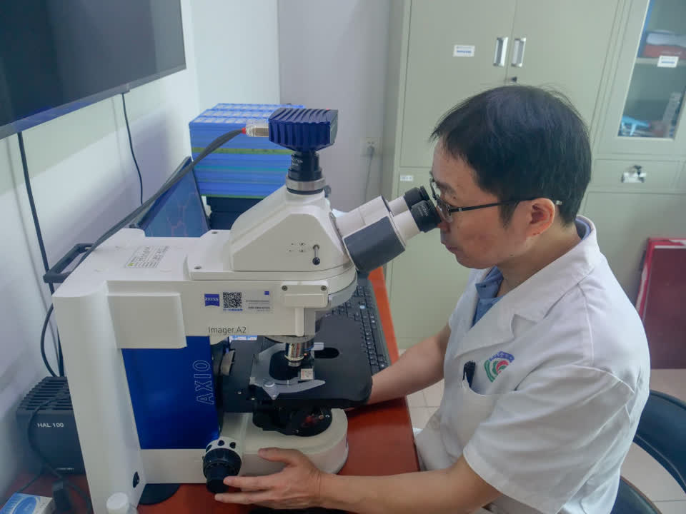 一臺顯微鏡、一個電腦工作站、幾十張病理切片——走進南昌大學第一附屬醫院罕見病中心主任洪道俊的辦公室,門口擺放的實驗桌引人注目,每周他和學生都會在這里集中“讀片”,研討近期接診罕見病患者的病理切片。