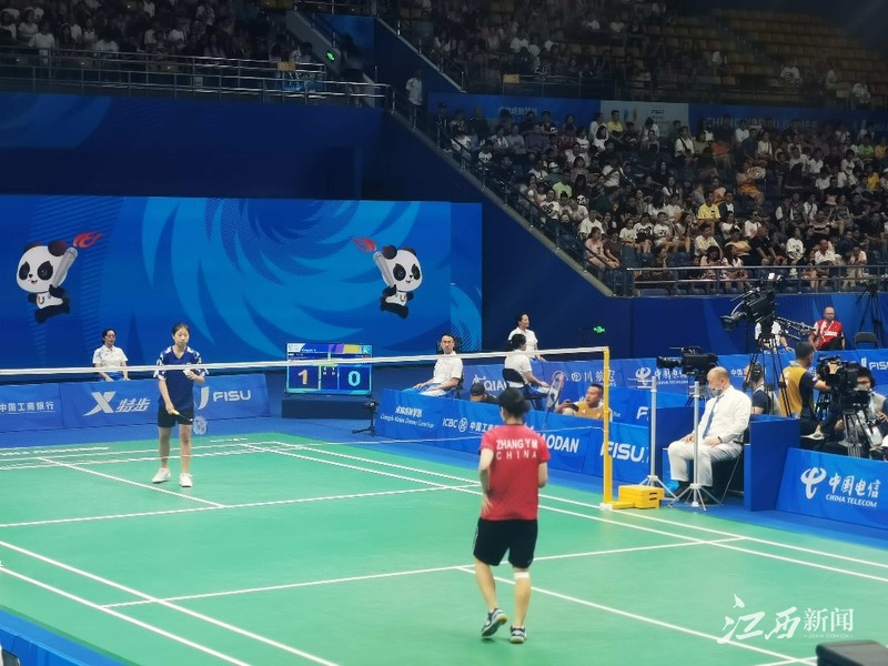 在羽毛球賽場上,來自南昌大學的張藝曼輕松獲勝。羽毛球當天進行的是混合團體小組賽,中國隊對戰同組最后一個對手泰國隊,張藝曼出任中國隊的女單。由于之前混雙和男單,中國泰國各勝一場,因此,第三個出場的張藝曼格外關鍵。張藝曼的對手是波恩皮查喬伊凱旺,兩人也是亞洲賽場上的老對手。沒有過多試探,雙方直接進入激烈對攻。兩個21比15,張藝曼笑到最后。最終,中國隊也以4比1戰勝泰國隊,小組三戰全勝,順利晉級。世界排名第17位的張藝曼來自上饒信州,是國羽排名第五的女單選手,在成都大運會賽場,需要參加女單和混合團體兩個項目,具有奪金實力。