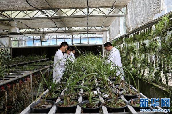 研究表明,大黃花蝦脊蘭瀕危的主要原因是其賴以生存的生態環境遭到破壞、人類過度采挖、種子有胚率極低、自然界為其有效傳粉的昆蟲缺失,導致適生區縮小且破碎化加劇。在找到了原因之后,楊柏云教授團隊建立了無菌培養和真菌共生培養的繁殖體系,在實驗室成功進行了規模化育苗。(新華網 吳亞芬 攝)